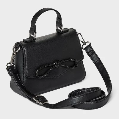 Mini crossbody bag from Wild Fable™ adorned with a bow at the front and sporting a structured design with interior pockets. Magnetic closure helps keep contents secure. Top handle and adjustable strap for convenient carrying.