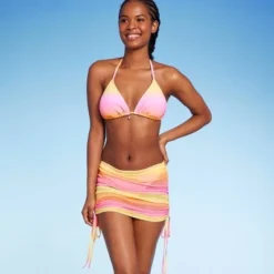 Women’s Mesh Drawstring Ruched Sleeveless Cover Up Dress – Wild Fable⢠Green Floral Print