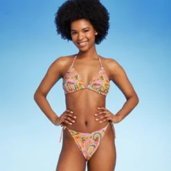 Women’s Paisley Print High Waist Medium Coverage High Leg Bikini Bottom – Wild Fable⢠Blue/Pink