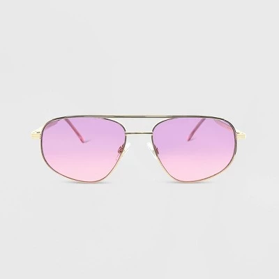 Aviator sunglasses from Wild Fable⢠with gold-tone metal frame and purple lenses. UV protection helps keep eyes shielded from harmful sun rays, and hinged temples offer convenient folding and storage.