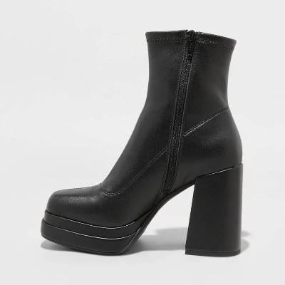 Faux-leather boots from Wild Fable™ set on a four-inch platform heel with a textured outsole. Designed with a round closed toe in an ankle length with zippered fastening. Memory foam insoles provide all-day comfort.