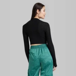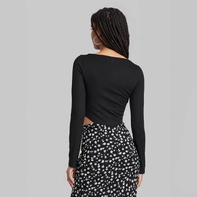 Long-sleeve tee from Wild Fable™ tailored in a standard-fit silhouette with a crop length. Crafted from midweight fabric with added stretch for comfort. Designed in a solid hue with a boat neckline.
