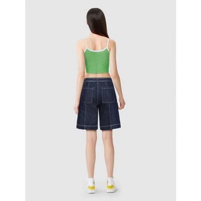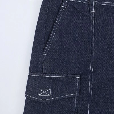 Cargo Jort from Wild Fable™ in a raw denim wash. On-trend longer-length cargo shorts crafted in a indigo blue denim. Soft cotton-blend. Designed with contrast stitching and seam details. Featuring utility pockets that are both stylish and functional. Pairs perfectly with almost any top in your wardrobe.