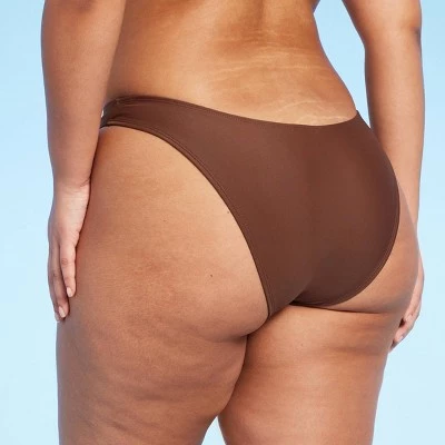 Extra-cheeky bikini bottom from Wild Fable™ tailored in a flattering low-rise, high-leg silhouette. Made of soft fabric with added spandex and elastic at leg openings for flexible comfort. Pull-on style for easy on and off.
