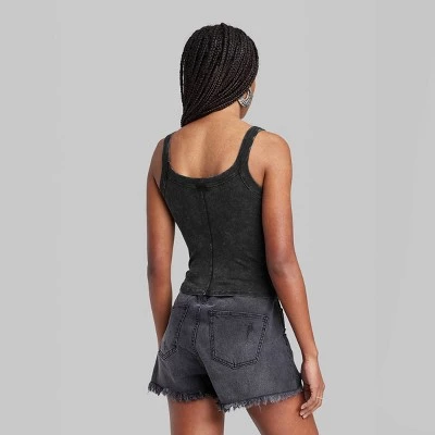 Solid-color layering tank top from Wild Fable™ with ribbed texture. Features a square neck with wide shoulder straps and reinforced stitching details. Made from midweight fabric with spandex for comfy all-day wear that moves with you. Pullover design and slim-fit silhouette complete the look.