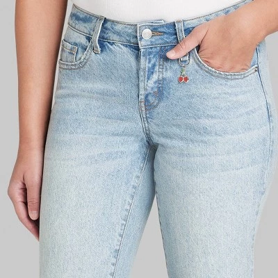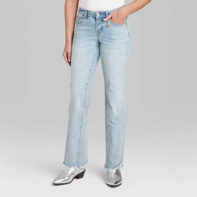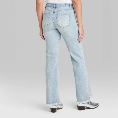 Medium-wash bootcut jeans from Wild Fable™ with a full-length silhouette and destroyed hems with fringed accents. Crafted from cotton-rich denim fabric with spandex for comfortable wear that moves with you. Tailored in a bootcut-leg silhouette with a regular fit. Belt-loop waistband with a zip fly and button fastening offers a secure fit. Classic five-pocket design completes the functional look.