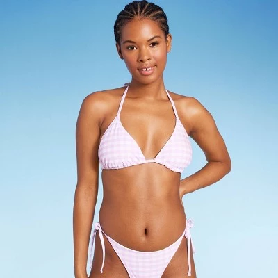 Reversible triangle halter bikini top from Wild Fable™ with a different print on the front and back. Made from soft fabric with four-way stretch and full lining for flexible comfort in and out of the water. Finished with back and behind-the-neck ties for a customizable, stay-put fit.