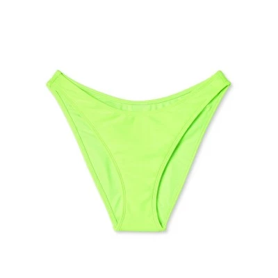 Scoop front cheeky bikini bottom from Wild Fable™ in neon green. Made with soft and stretchy fabric with full lining. Low-rise with extra-high-leg design. Pull-on style for easy on and off.