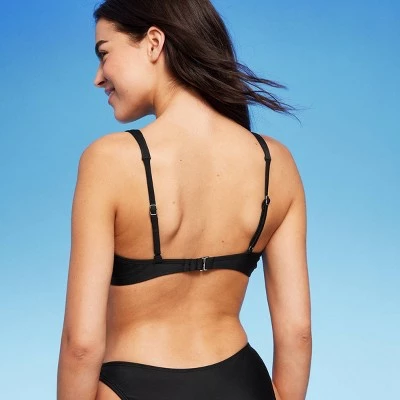 Underwire bikini top from Wild Fable™ with a scoop-front design. Made from soft fabric with spandex and full lining for stretchy comfort in and out of the water. Adjustable shoulder straps and a back strap with hook closure finish off the stylish look.