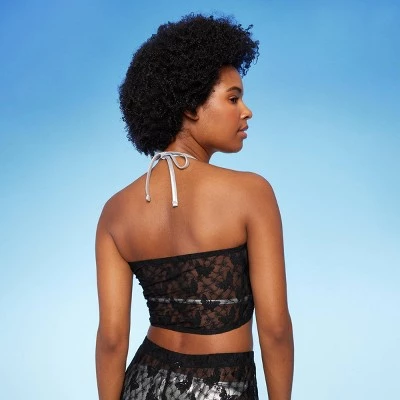 Black tube cover-up top from Wild Fable™ designed with butterfly pattern lace. Soft and stretchy fabric provides breathable comfort in and out of the water. Pullover style allows for easy on and off.