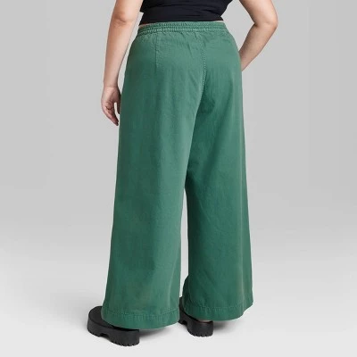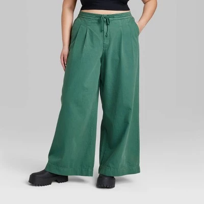 Super-high-rise jeans from Wild Fable™ in a green finish with front pleats and back darts. Tailored in a wide-leg silhouette with a relaxed fit. Crafted from cotton-rich denim fabric for comfortable wear. Feature drawstring waistband with a zip fly and button fastening for a secure fit. Front pockets complete the design and provide space for your on-the-go essentials.