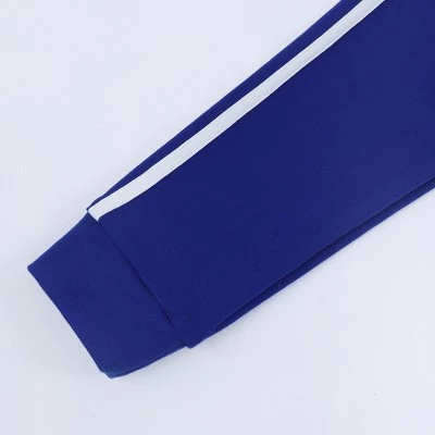 Track Jacket from Wild Fable™ in a blue hue with stripe detail. This vintage-inspired jacket is sporty chic featuring a white sport stripe accent on each sleeve, contrast zipper, and ribbing at cuffs and hem. Crafted in a rayon/nylon ponte knit fabric. Designed for a shrunken fit.